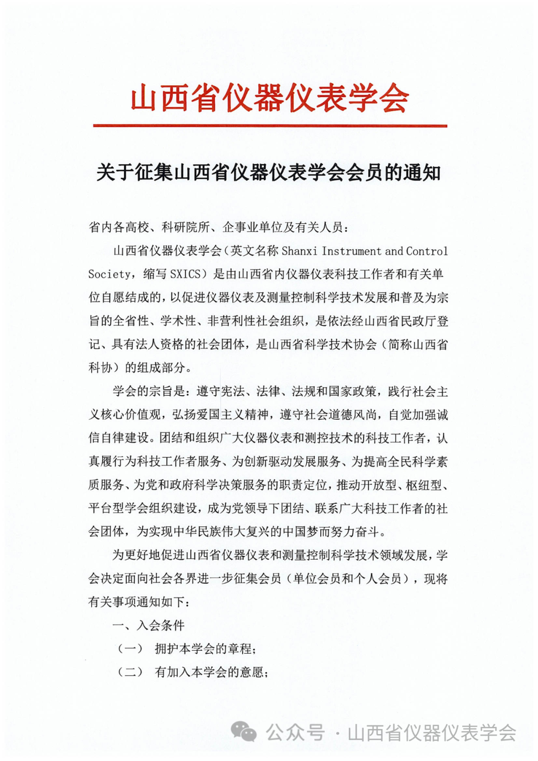 关于征集山西省仪器仪表学会会员的通知