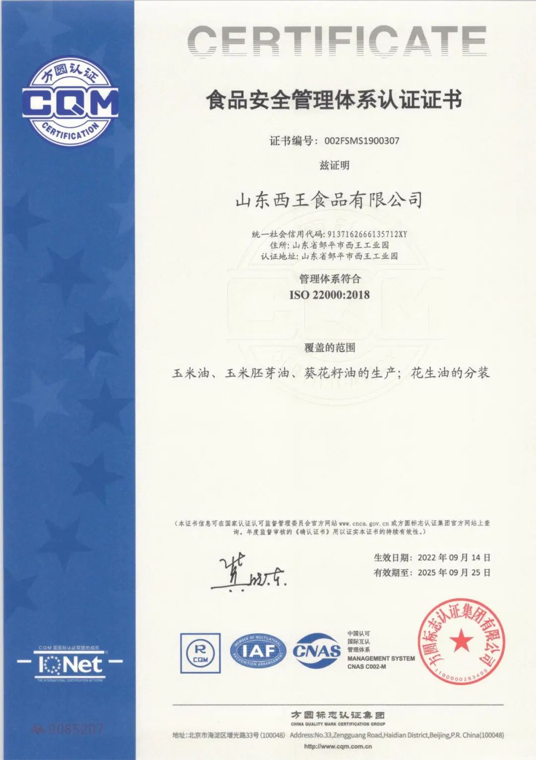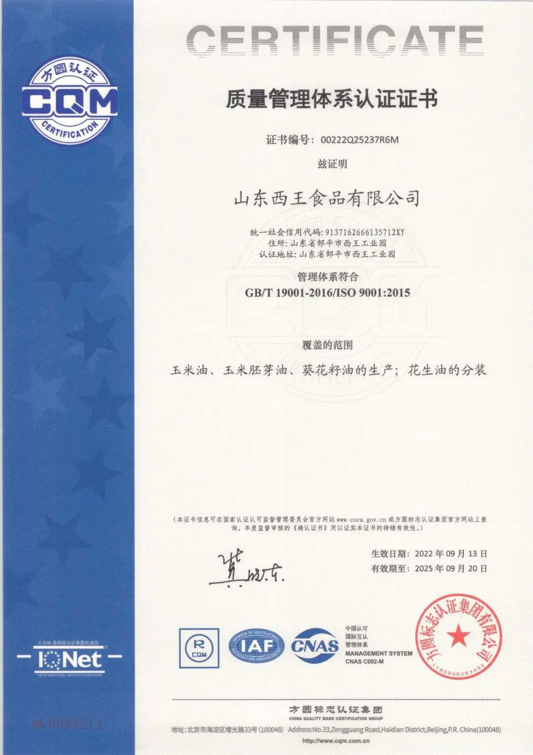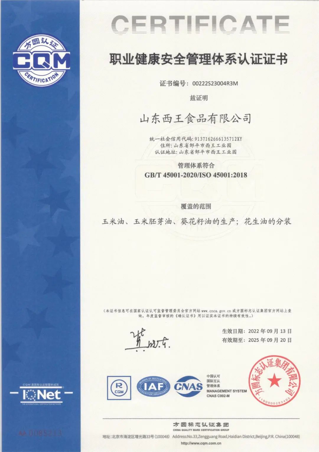 西王食品是一家以高端健康食用油和运动营养品为主的现代化大型企业,公司依托农业产业化国家重点龙头企业、中国民营企业五百强—西王集团,是国内较大的玉米胚芽油生产基地,公司于2011年2月在深圳上市,成为首家登陆国内A股主板的玉米油企业。企业被认定为“高新技术企业”、“绿色工厂”、全国粮油优秀科技创新型企业、“食安山东”首批食品生产示范企业、山东省玉米油制造业单项冠军企业;荣获中国好粮油示范企业、国家知识产权示范企业、全国工人先锋号。同时2021年8月被评为食品质量品牌5A级企业、2021年9月被评为山东省技术创新示范企业、2014年6月国家安全生产标准化一级企业。