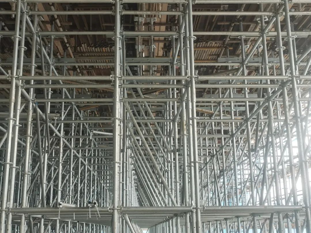 二层排架也按照方案要求严格搭设,排架整体搭设到位,超限梁底也按方案执行。杜绝偷工减料、确保本工程安全质量。