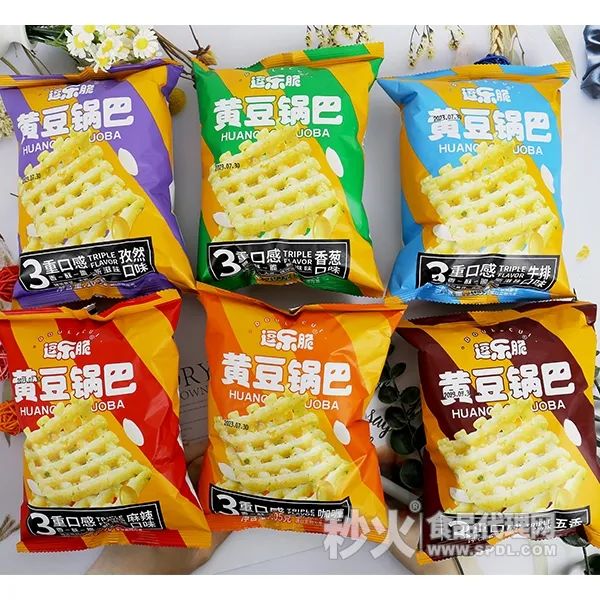 【产品介绍】逗乐脆黄豆锅巴,甄选优质黄豆、大米、植物油,又香又酥又脆,大人小孩都爱吃!有麻辣、五香、孜然、咖喱烤肉、酱汁牛排、香葱鸡肉等多种口味,每一种口味对应一种颜色。即使摆放在终端市场,也能很好的吸引消费者的眼球,激发消费者的食欲,促进产品的销售!