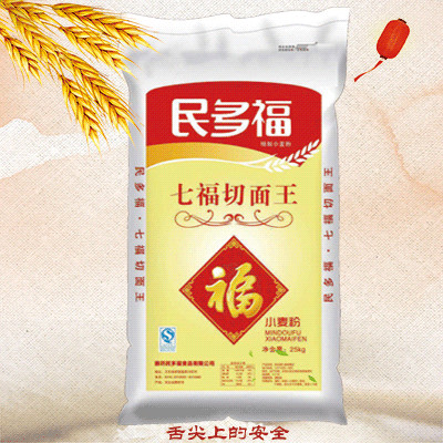 本产品价格为65元/袋,民多福食品公司实力雄厚,固定资产7000多万,占地15000平方米,日处理小麦600吨