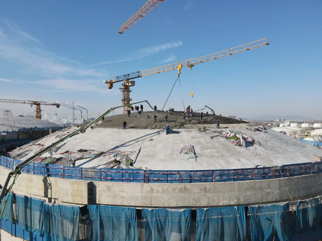 11月30日,中国空分承接的连云港荣泰五期项目低温丙烷/丁烷通用混凝土储罐穹顶浇筑圆满完成,标志着两座120000m3混凝土储罐外罐主体结构全部完成。储罐穹顶浇筑是项目施工的重要里程碑节点,浇筑作业的圆满完成体现了中国空分高标准高质量推进项目建设、打造精品工程的能力。