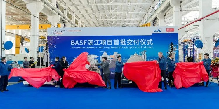 12月14日,在业主、总包公司及KSB员工的见证下,上海凯士比泵有限公司BASF湛江一体化项目首批交付仪式在公司工厂顺利举行。作为BASF迄今为止最大的海外投资项目,上海凯士比泵有限公司共参与了9个装置超过50个询报价包的报价并陆续承接了该项目共计294台离心泵的订单,不含税总金额高达9500万RMB,是KSB集团和BASF有史以来最大的订单。