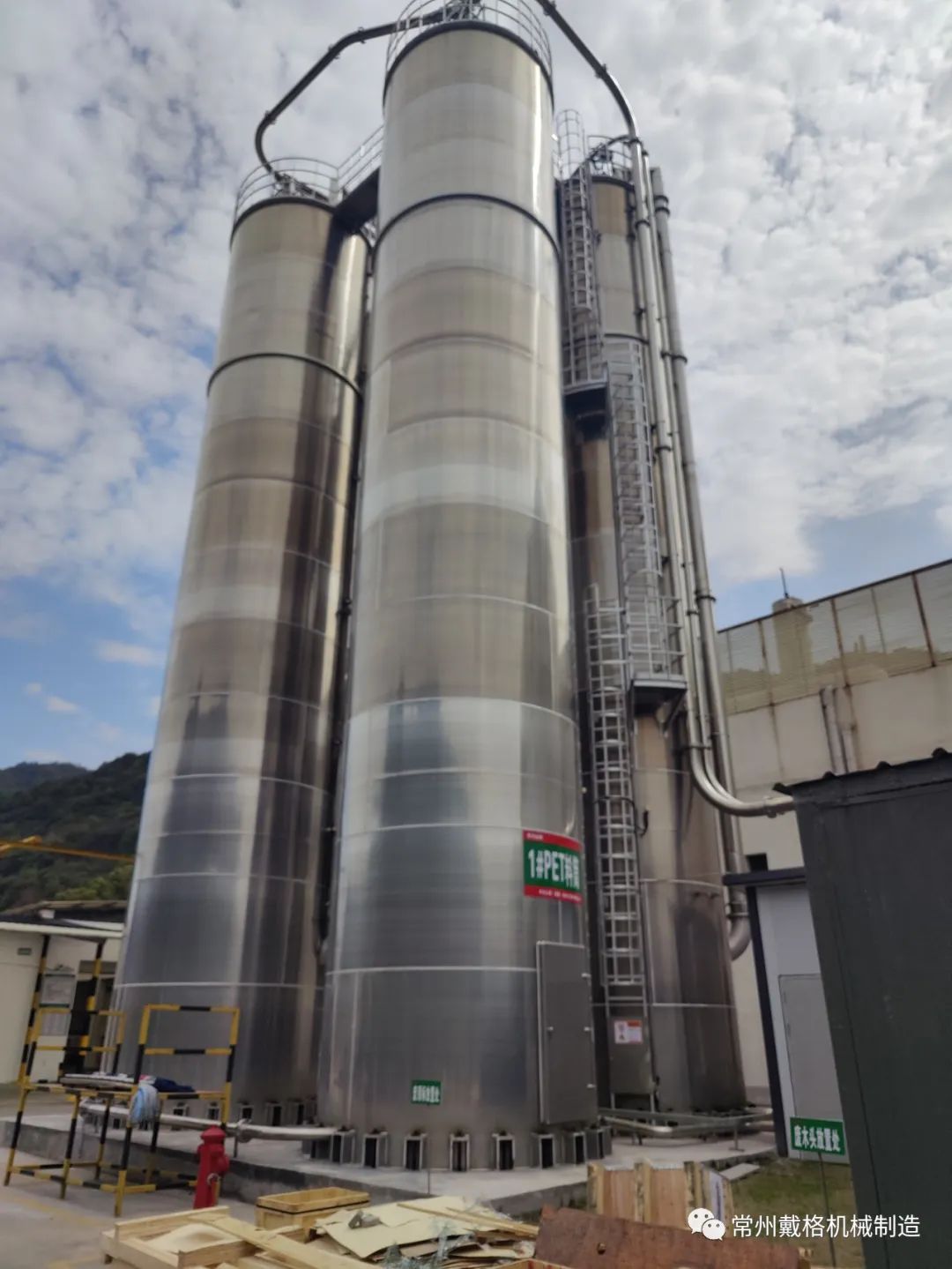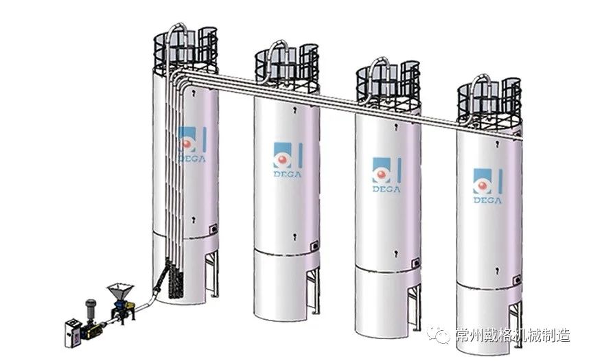 室外大型储料罐和供料系统主要用于塑料的储存和输送,这种储存方式安全可靠,防止了原料受外界的污染和原料的遗散,使工厂保有一定的原材料储备量。室外储料罐一般采用不锈钢或铝合金材质,可根据原料用量和储备量确定储料罐的容积和数量。