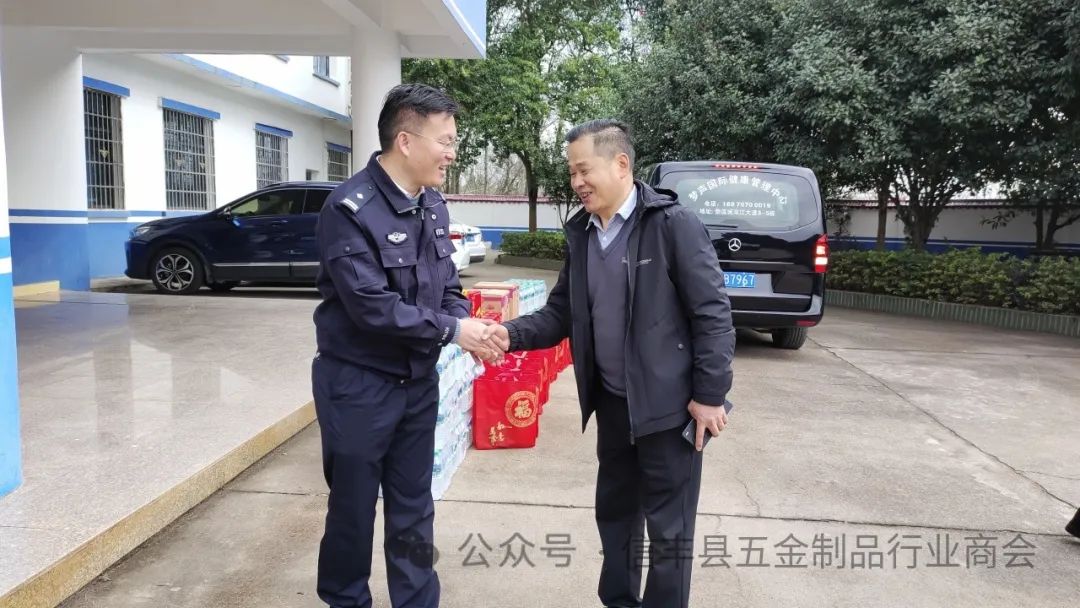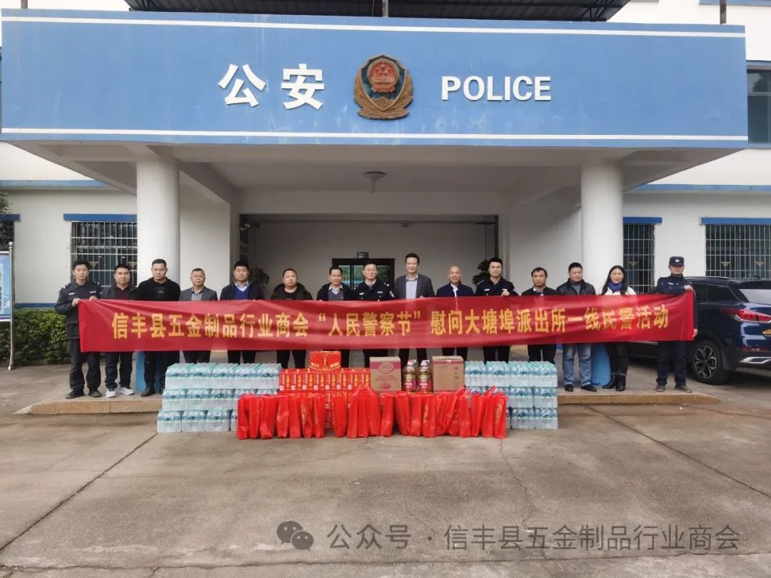 2024年1月10日,迎来第四个“中国人民警察节”。信丰县五金制品行业商会公益事业部发出倡议,会长王胜华,执行会长李桃江,常务副会长刘飞(兼公益事业部部长)、张占敖、傅建兵,副会长陈明飞、张卿麟、赖华香,理事徐华园、曾右红等各位家人和秘书处工作人员,迎着冬日的暖阳,带着自发捐赠的慰问品来到信丰县大塘埠派出所,向奋战在一线的基层民辅警送上节日祝福,用实际行动诠释了警民“鱼水情深”。