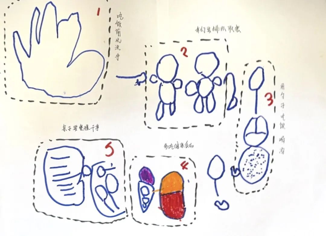 小班的宝贝刚刚适应幼儿园的集体生活,进餐是锻炼自理能力的好时机。从餐前洗手、餐后漱口、餐桌整理到进餐礼仪和自主取餐,每一个环节都能努力自己完成好,在画一画和说一说中慢慢养成健康营养的进餐习惯。