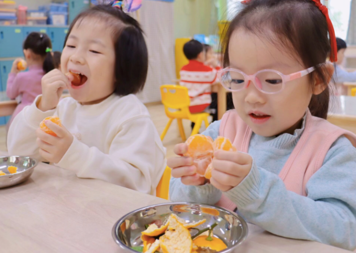 冬天正是吃橘子的季节,小小的橘子不仅味道好、营养价值也很高。中三班的小朋友们看一看、摸一摸、尝一尝,调动多种感官去探究,还发明了一些橘子小游戏、和爸爸妈妈一起做桔皮手工,玩得可开心了!