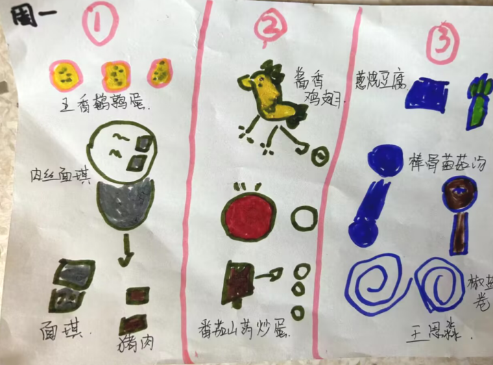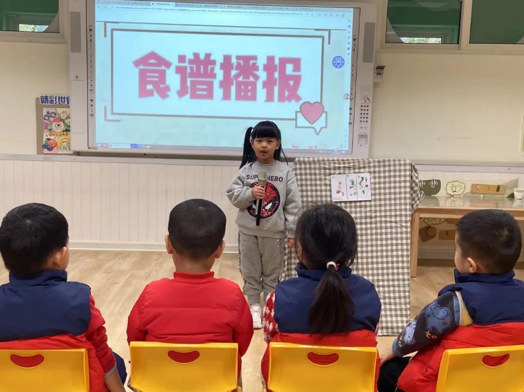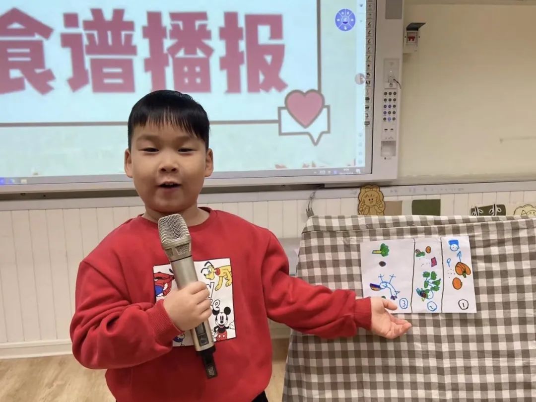 小朋友每天走进幼儿园,都会好奇“今天吃什么呢?”中二班的小朋友们就开展了“小小美食播报员”的项目活动。他们将每天幼儿园的三餐两点,用每日食谱的方式画下来,在班级中进行播报,让小伙伴们都能了解食物的营养,慢慢改掉挑食的坏习惯。
