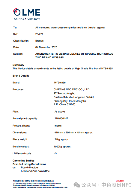 此次评估的顺利通过和LME注册品牌信息更新工作的完成,进一步提升了“红烨”牌锌锭在全球范围内的品牌影响力,是中色锌业在不断加强供应链管理和品牌战略过程中取得的标志性进展,为今后实现绿色高质量发展提供了坚实保障。