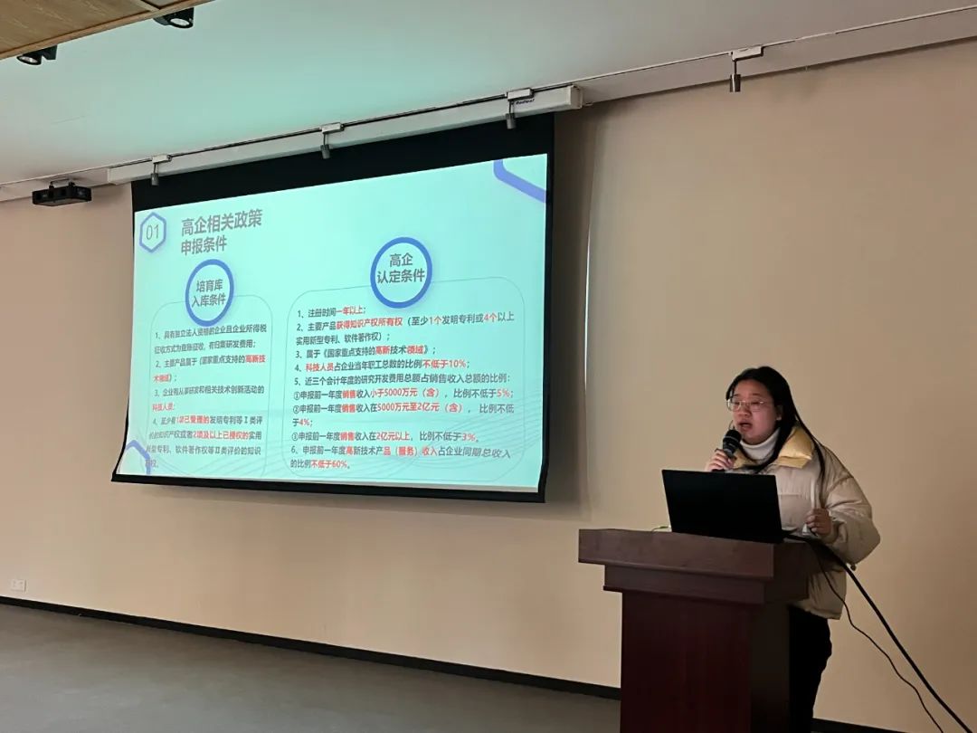 在为期半天的培训班上,分别由海曙科技局高新科李超芸作《科技创新政策解读》;宁波禹瑞科技咨询有限公司项目经理王玲慧作《纺织服装企业科研项目立项辅导》;以及宁波市高企辅导中心入库专家,宁波世铭税务师事务总经理、高级会计师余海辉作《纺织服装企业研发费用归集及税务政策辅导》。