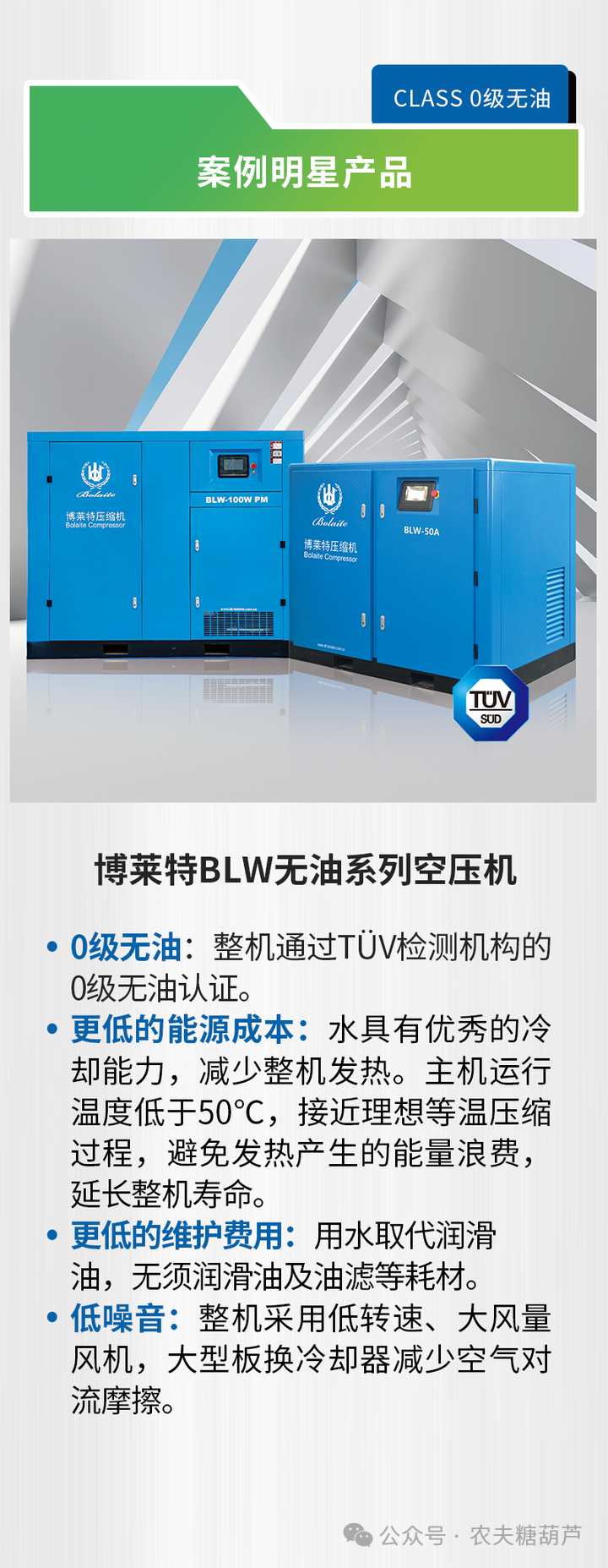 - 主机运行温度低于50℃,接近理想等温压缩过程,避免发热产生的能量浪费,延长整机寿命。用水取代润滑油,无需润滑油及油滤等耗材。- 整机采用低转速、大风量风机。