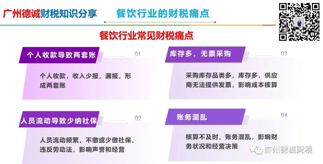 连锁餐饮行业,基本上都是以加盟店和直营店的形式存在。其经营模式,大都是加盟之后同步提供统一的门店装修,食材供应,还有一些门店运营的指导。餐饮行业常见财税痛点分享如下: