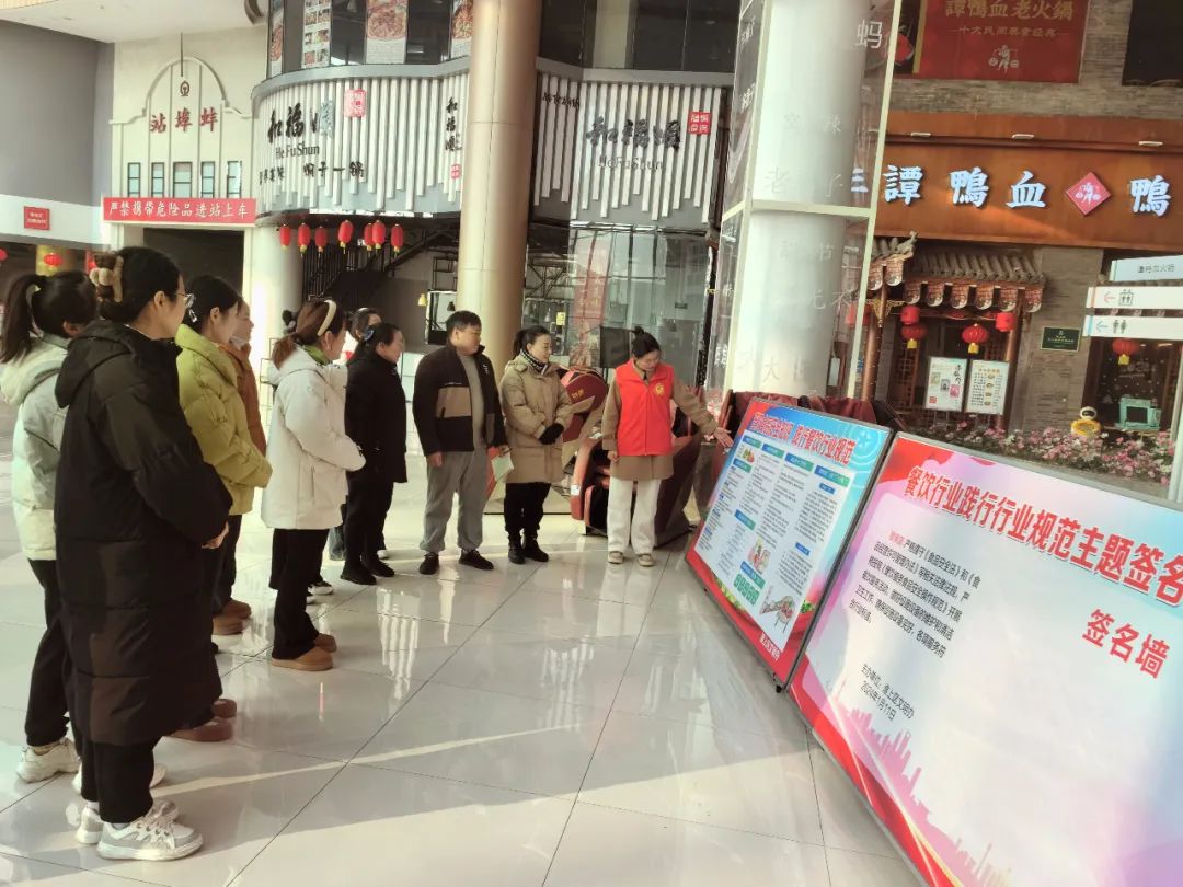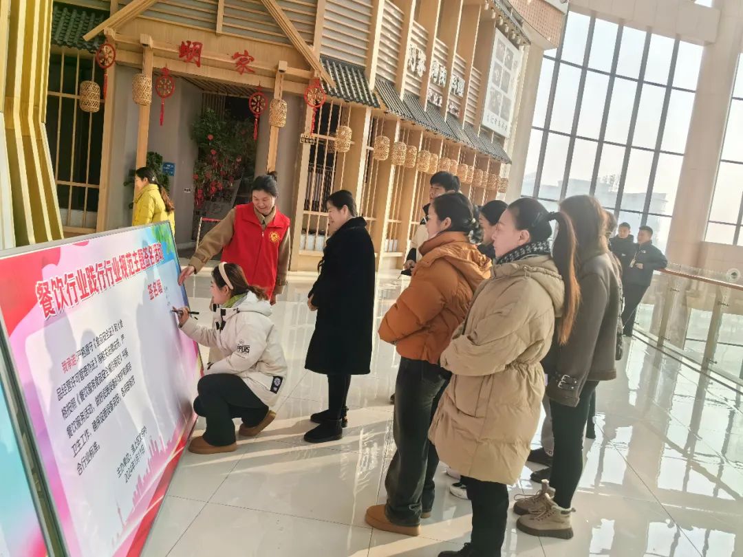 活动中,工作人员首先向餐饮行业员工宣传保障食品安全的相关政策法规,随后宣读诚信经营承诺书,号召餐饮行业员工承诺严格遵守《食品安全法》和《食品经营许可管理办法》等相关法律法规,严格按照《餐饮服务食品安全操作规范》开展餐饮服务活动,并做好设施设备的维护和清洁卫生工作,最后各商户在签名墙上完成签名。