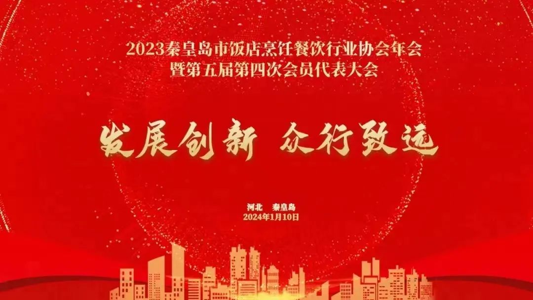 2024年1月10日秦皇岛市饭店烹饪餐饮行业协会2023年年会暨第五届第四次会员代表大会在丽都酒店隆重召开。出席本次会议的嘉宾有河北省饭店烹饪餐饮行业协会会长、中国·冀菜产业发展研究院副院长吕毅华、中国冀菜产业发展研究院副院长兼研究院办公室主任夏树明、秦皇岛市外事和商务局三级调研员董立宏、秦皇岛市民政局三级调研员赵会锁、秦皇岛市行政审批局四级调研员李占勇、秦皇岛市外事和商务局安全生产和市场秩序科科长郭英身、海港区总工会副主席杨晶晶、秦皇岛市民政局社会组织管理科科长赵芳、秦皇岛市市场监督局餐饮安全监督管理科科长张瑜、秦皇岛市饭店烹饪餐饮行业协会终身名誉会长李长友、原秦皇岛市饭店餐饮协会副会长兼秘书长韩汝珍、秦皇岛市饭烹协专家顾问杨体龙。秦皇岛市饭店烹饪餐饮行业协会会长、秘书长,协会会员单位代表,市饭店餐饮业同仁,产业链供应商200余人参加了会议。