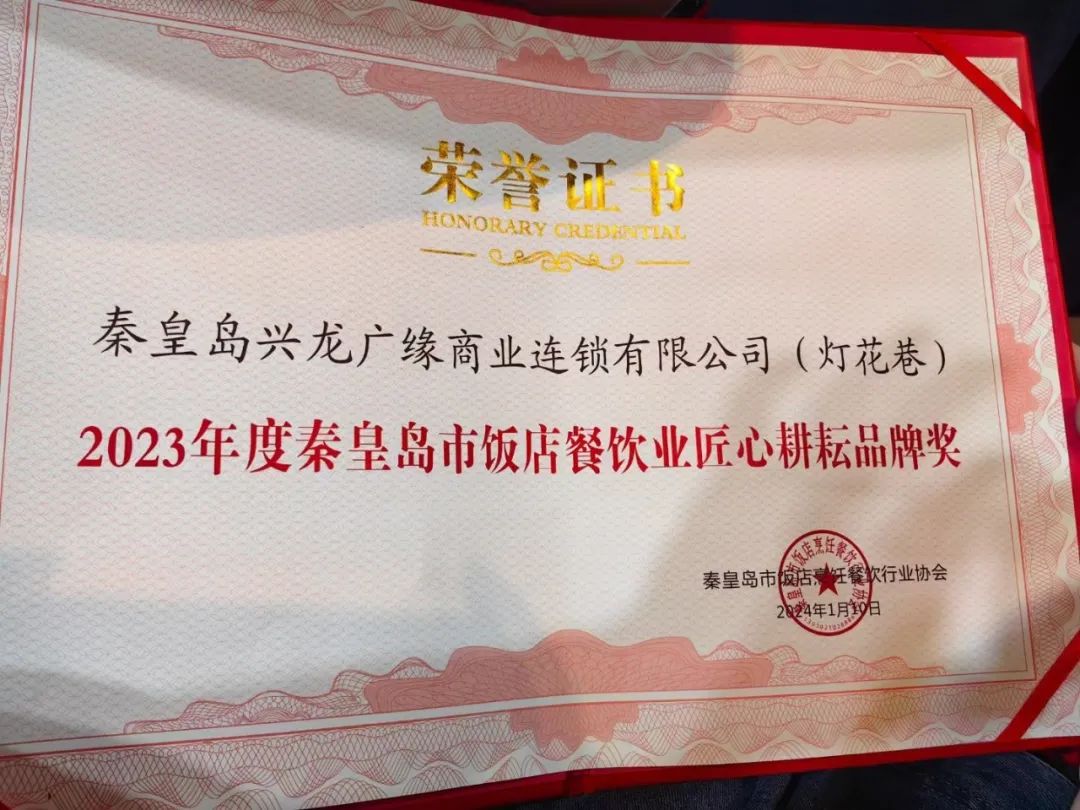 获得2023年度秦皇岛市餐饮业 “匠心耕耘品牌奖”