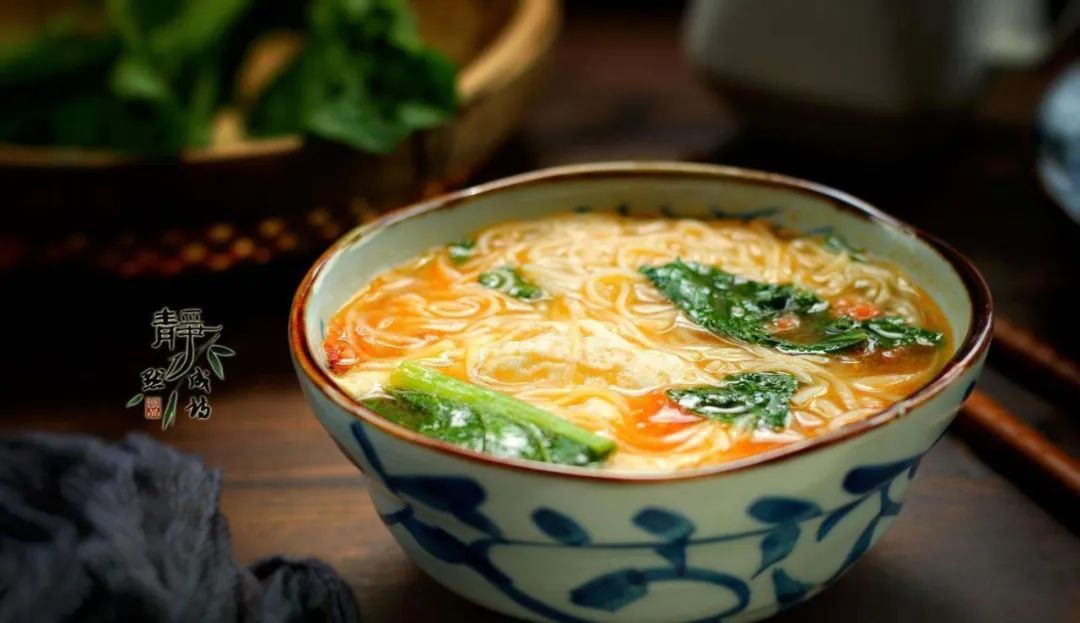 鸡蛋:15克、面粉:50 克、猪肉:10克、上海青:30克、面条:20克