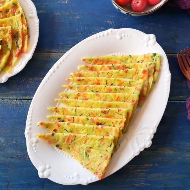鸡蛋饼、上海青炒肉、枣荷叶、炝锅面