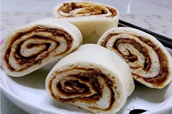 精制肉卷、蒜苔炒香干、八宝粥(自助餐)