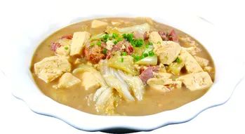 鸡腿:50克、白菜;50克、豆腐:30克、面粉:50克、粉皮:15克、小米:15克