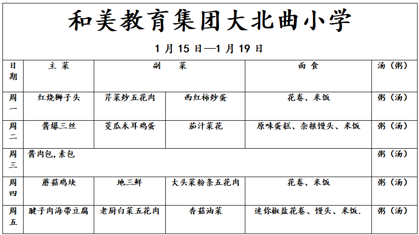 【校园食谱】“食”刻相伴—和美教育集团大北曲小学第21周食谱