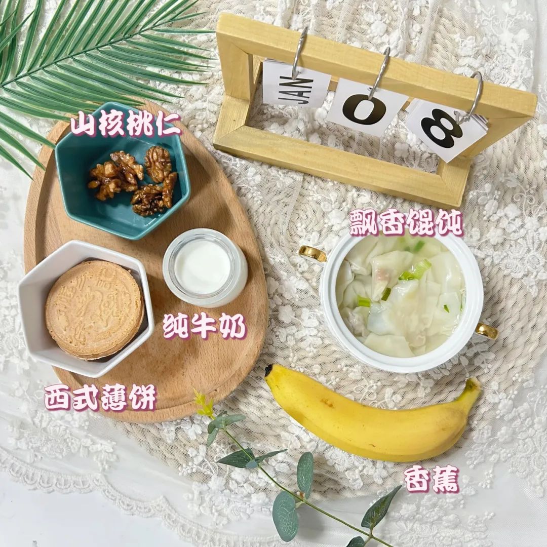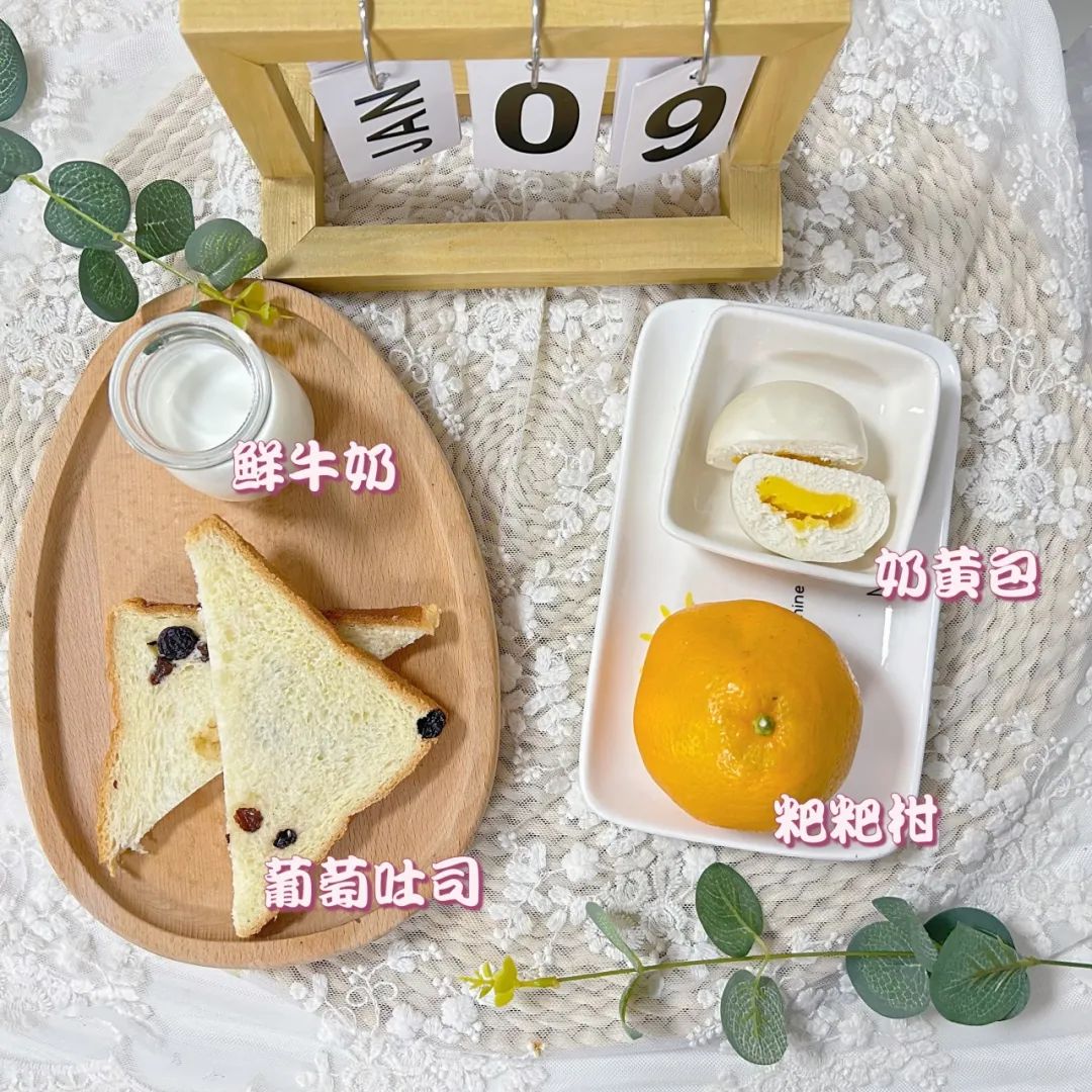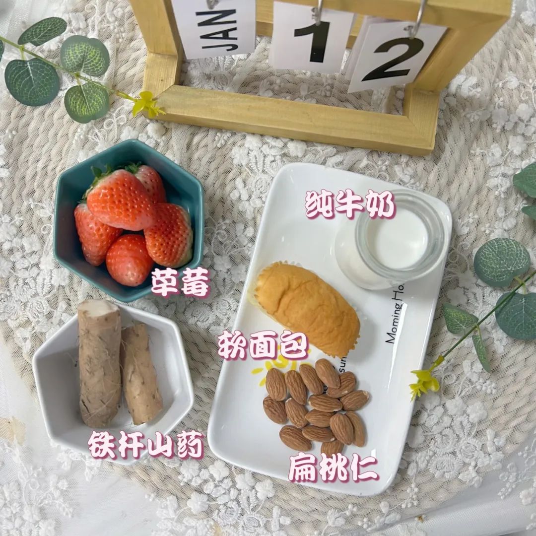 早点 纯牛奶、熊仔蛋糕、香酥腰果