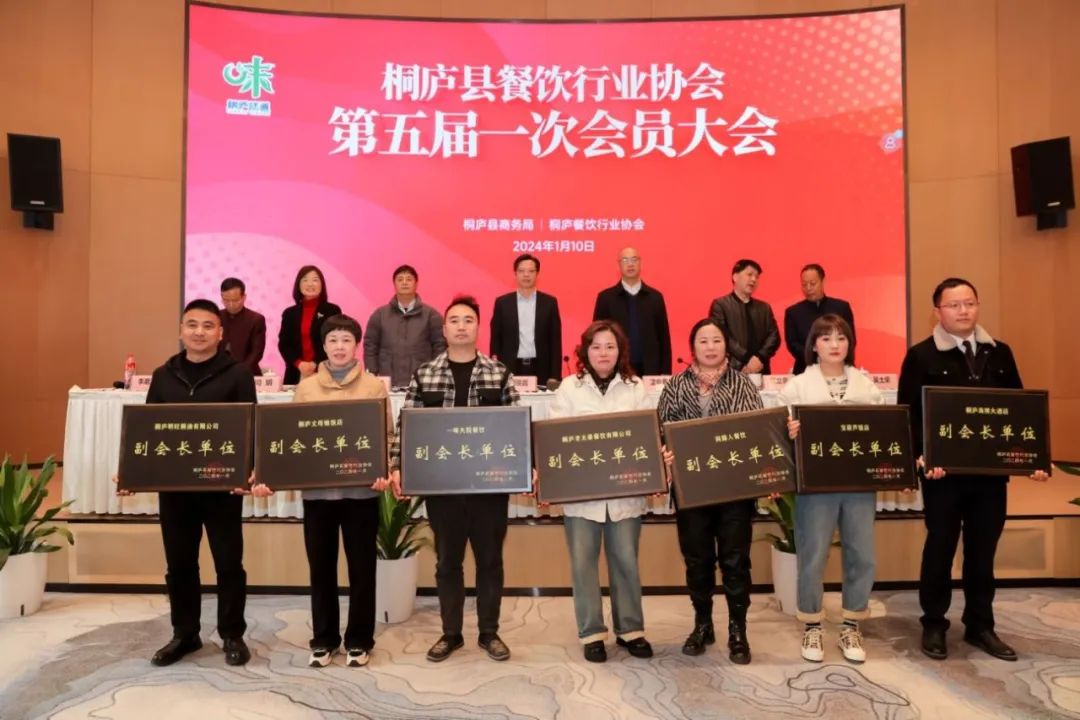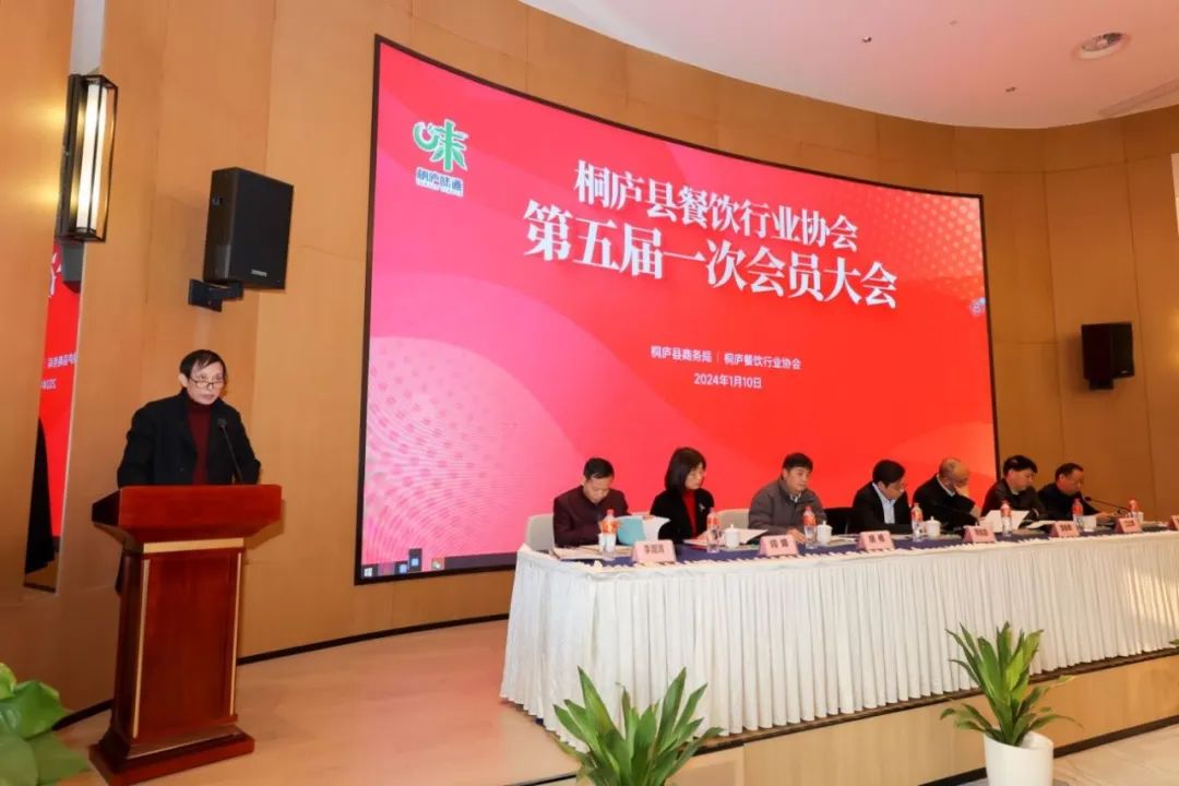 桐庐县商务局局长雷会鑫在会上对桐庐县餐饮行业协会第五届一次会员大会暨换届大会的圆满成功表示祝贺,鼓励协会在再接再厉、再创佳绩。