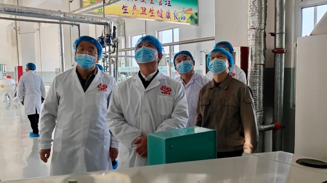 田军先后来到古城食品公司生产车间、中控室、展厅、直播间等地,进车间、看产品,认真听取了古城食品公司负责人相关介绍,详细了解生产工艺和设备运转情况,仔细询问产品种类、产品销售以及职工工资发放等情况。