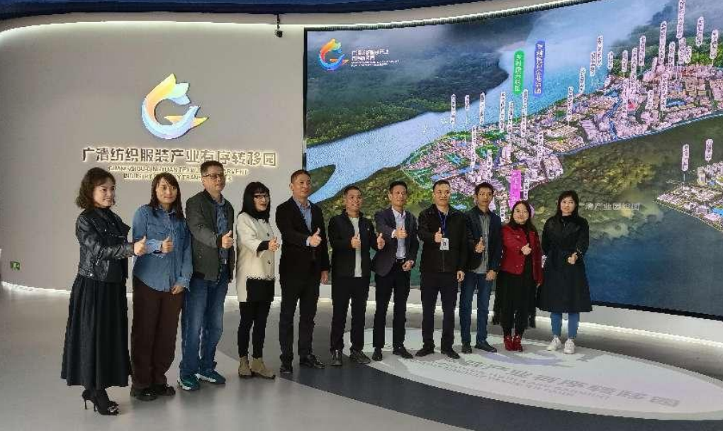 校企双方在广清纺织服装产业有序转移园大厅留影