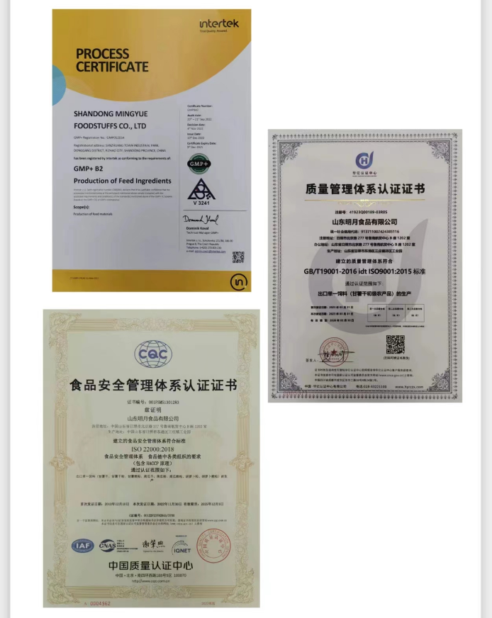 产品的质控和质保是明月食品追求的首要目标。为此,明月人自始至终矢志不渝地努力,建立了一整套严格的质控流程。公司先后在2010年通过HACCP和ISO22000质量管理体系认证,在2013年通过GMA-SAFE认证,并在2019年通过GMP+质量管理体系认证,被中国出入境检验检疫协会列入“中国质量诚信公司”名录。