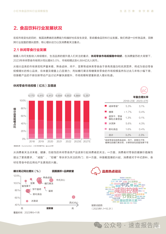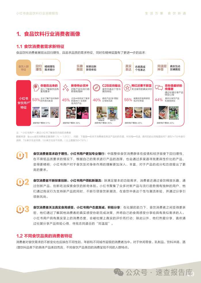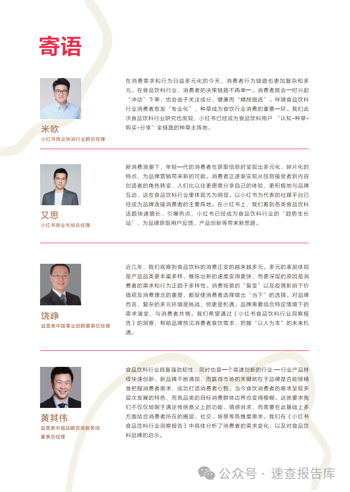 近几年,我们观察到食品饮料的消费正变的越来越多元。多元的表层体现是产品品类更丰高多样、推陈出新的速度变得更快,而更深层的原因是消费者的需求和行为正趋于多样性。消费场景的“裂变”以及疫情影响下价值观及消费理念的重塑,都促使消费者选择做出“当下”的选择。对品牌而言,复杂的多元环境是挑战,但更是机遇。品牌需要结合特定情境下的需求演变,与消费者共情。希望通过《小红书食品饮料行业洞察报告》的洞察,帮助品牌预见消费者食饮需求,把握“以人为本”的未来机遇。