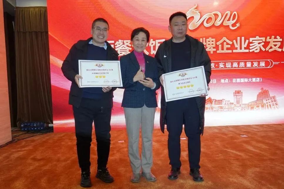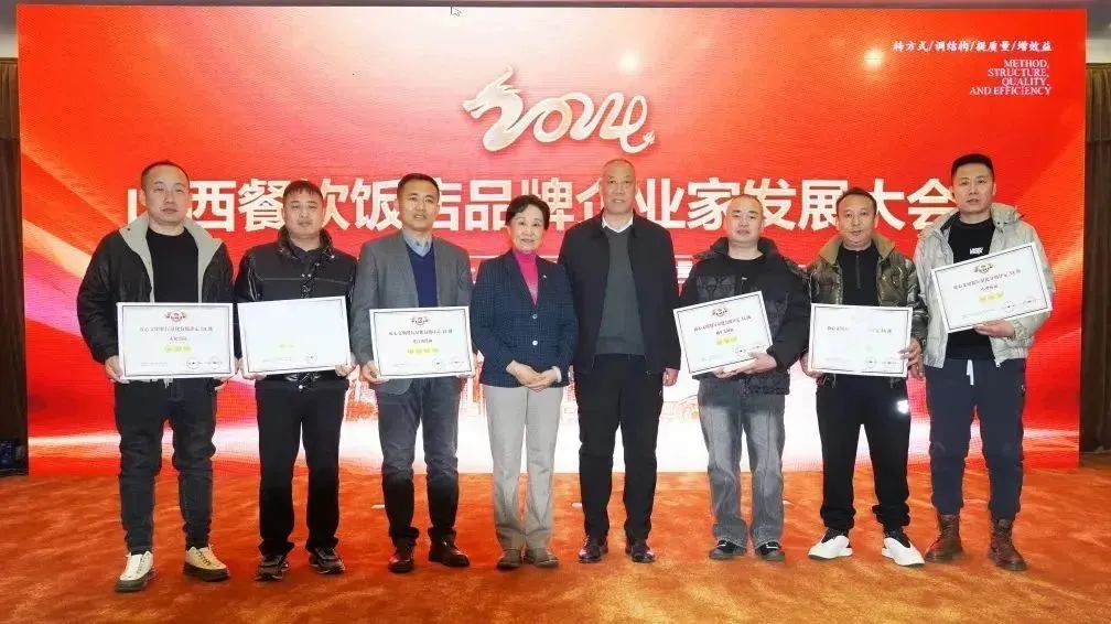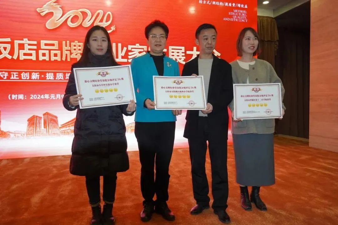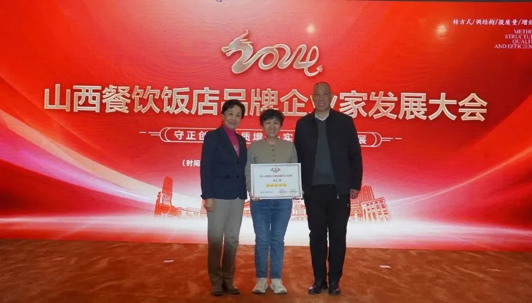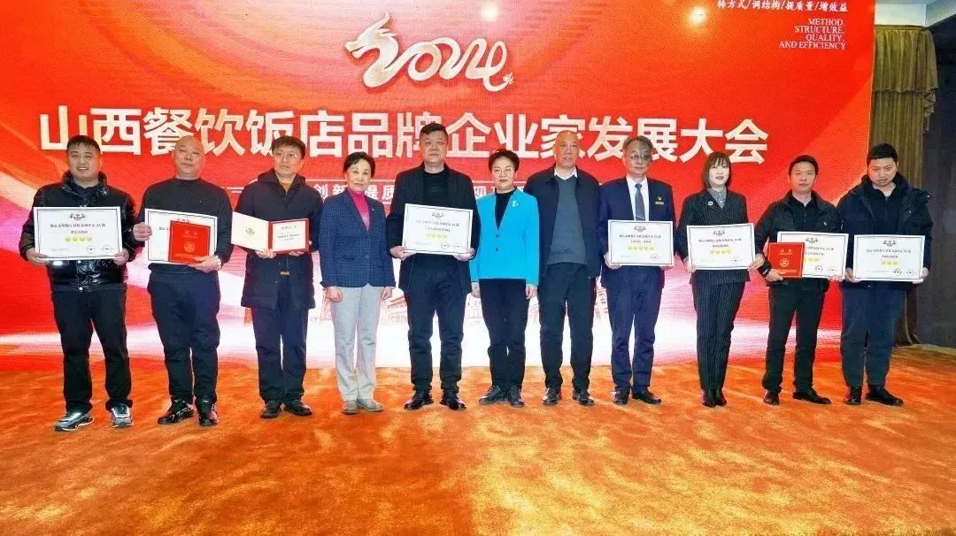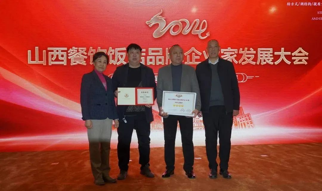 2024年1月10日上午,“山西餐饮饭店品牌企业家大会”举行隆重的表彰仪式。山西总工会一级巡视员、省财贸工会主席韩丽珍,副主席张帆,省市场监管局餐饮处副处长张辉,省商务厅消费促进处副处长王蕊,省乡村产业融合发展中心主任武东轶、省烹协会长冯守瑞、常务副会长刘强为2023山西餐饮饭店业优质品牌企业与先进个人颁奖授牌发证。其中有《“五比一争”优秀单位》《中国绿色饭店》《放心文明餐厅》《放心文明好食堂》《放心文明餐厅示范店》《创建“放心文明餐厅”优秀社团与个人》《2023社会责任奉献奖》《人气最旺非遗头脑店》《最具特色非遗刀削面餐馆》等。