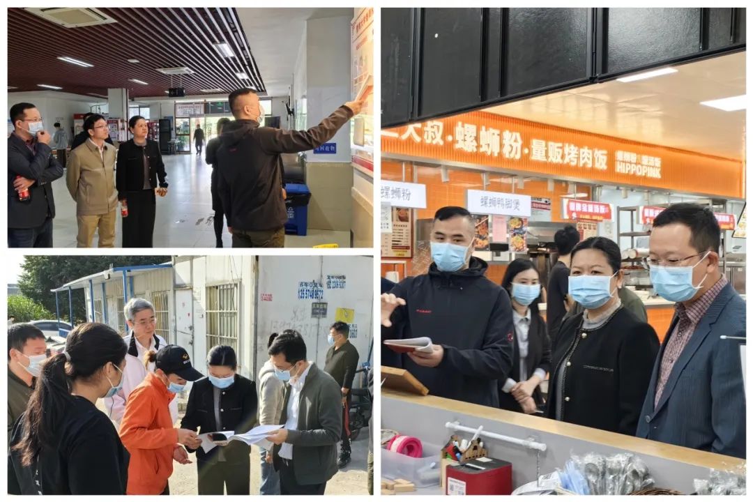 为深入贯彻习近平总书记关于食品安全的重要指示精神,严格落实“四个最严”要求,按照《国务院食安办等五部门联合部署校园食品安全排查整治专项行动》的工作部署,做好岁末年初校园食品安全监管工作,1月10日上午,番禺校区管委会执行主任潘启亮、党委书记刘金顺、资产经营有限公司党委书记、董事长林满带队开展番禺校区食品安全专项检查工作。番禺校区管委会行政副主任江旎、保卫办公室主任李孜博,资产经营有限公司副总经理白德发,以及相关工作人员陪同检查。