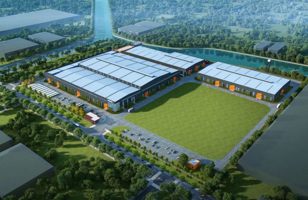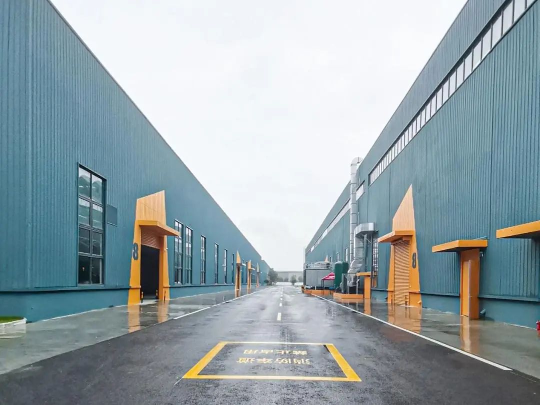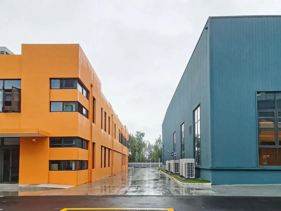 厂区外立面经过改造焕然一新,整个厂区的外立面颜色由宝时得科技公司的Logo中获得灵感,以深蓝色为主,橘色为辅。