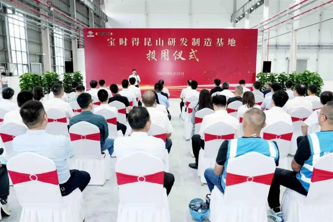 在交付现场,昆山旅游度假区党工委书记宋德强向宝时得集团制造部门总经理余兵移交代表投用的“金钥匙”。