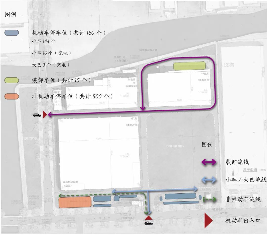 装卸车位:4#仓库北面(方便货物装卸且位置隐蔽不影响厂区环境效果)