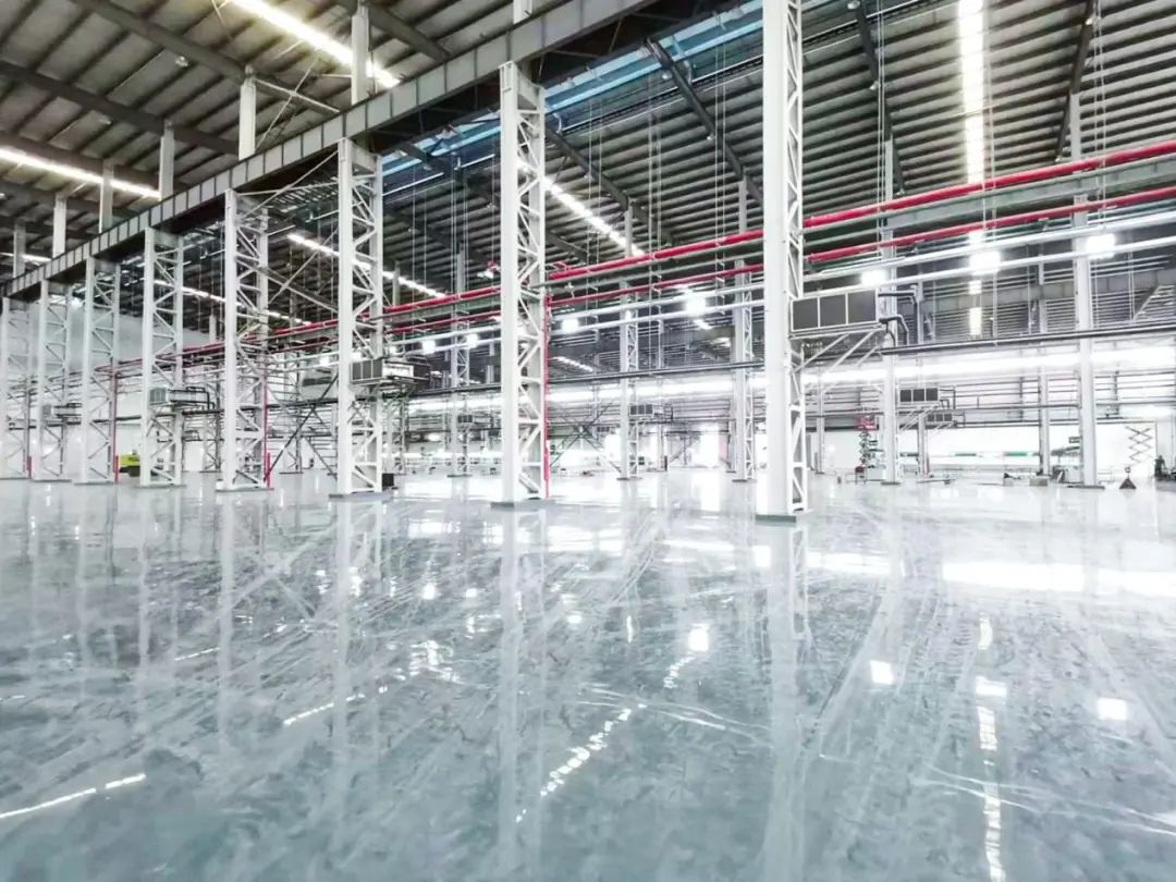 室内墙面为白色面层、钢柱外覆防火涂料,地面为防静电环氧地坪,经过打磨处理后,地面光滑如镜,与墙面相互映照,使空间更显宽广与明亮。