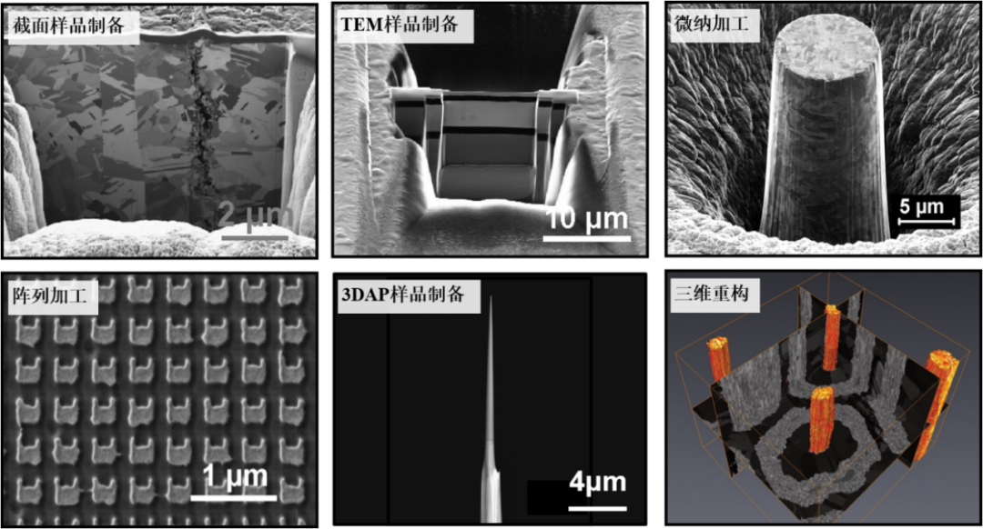 Crossbeam 350拥有蔡司Gemini I镜筒,物镜无漏磁的设计在兼容磁性样品的同时有效避免对离子束的干扰,实现边切边看的功能;Ion-sculptor是蔡司公司最新设计聚焦离子束离子枪,其具备高分辨、大束流、加工速度快、低电压对样品非晶损伤小、稳定性好、寿命长等特点,可快速实现TEM样品制备、微纳加工等多种工作。配有牛津能谱仪(EDS)以及电子背散射衍射仪(EBSD),可实现原位元素成分及晶体取向等分析。