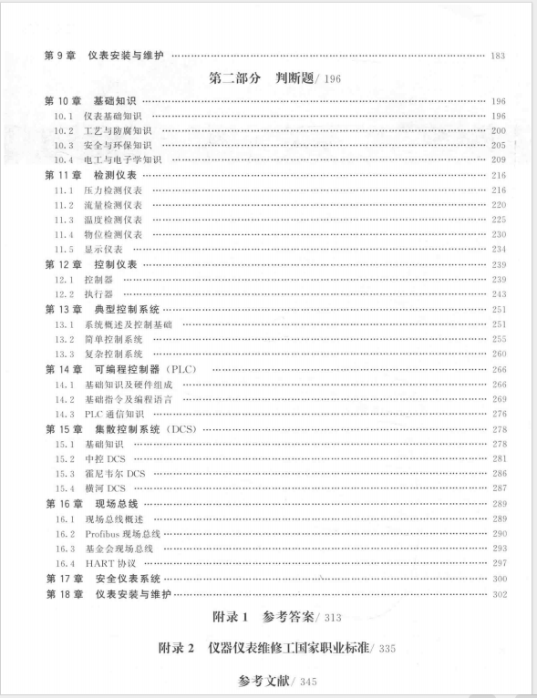 本书包括仪器仪表基础知识及专业知识两大方面内容,按选择题和判断题两种题型编成,基础知识主要指仪器仪表维修工必备的仪表知识、工艺及安全环保、电工电子学知识;专业知识包括检测仪表、控制仪表、典型控制系统、计算机控制系统(如集散控制系统、现场总线、可编程控制器、安全仪表系统)、仪表安装与维护等方面的内容。