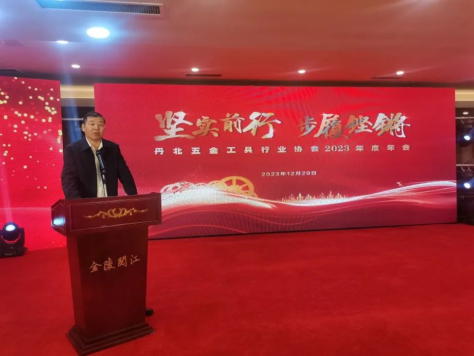 崔晓敏镇长讲话表示,2023年虽然充满种种挑战,经历了种种困难,但是,也是激情奋斗、充满收获的一年。丹北镇实现了地区生产总值325亿元,制造业投资、工业应税销售、规上工业总产值等重点指标迈出了产业强镇的坚实步伐,这离不开丹北五金工具行业协会全体企业家的辛勤付出。五金工具行业协会始终坚持团结立会、服务兴会、发展强会,带领会员企业负重前行,稳中求进,不断推动产业转型升级,赢得了竞争发展新优势,为区域产业发展注入了强劲支撑力。他指出,期待五金工具行业协会更好地发挥平台作用,主动牵线搭桥,整合资源,推动发展,营造良性的竞争关系,构建公平的税负环境,密切各企业间的交流合作,把丹北五金工具行业协会这一金字招牌擦的更亮,推的更广。丹北镇党委政府将一如既往地当好有呼必应“店小二”,尽心尽力构建亲清政商关系,打造一流营商环境,提供优质高效服务,与广大企业家风雨同舟,携手前行,共同开创丹北美好的未来。
