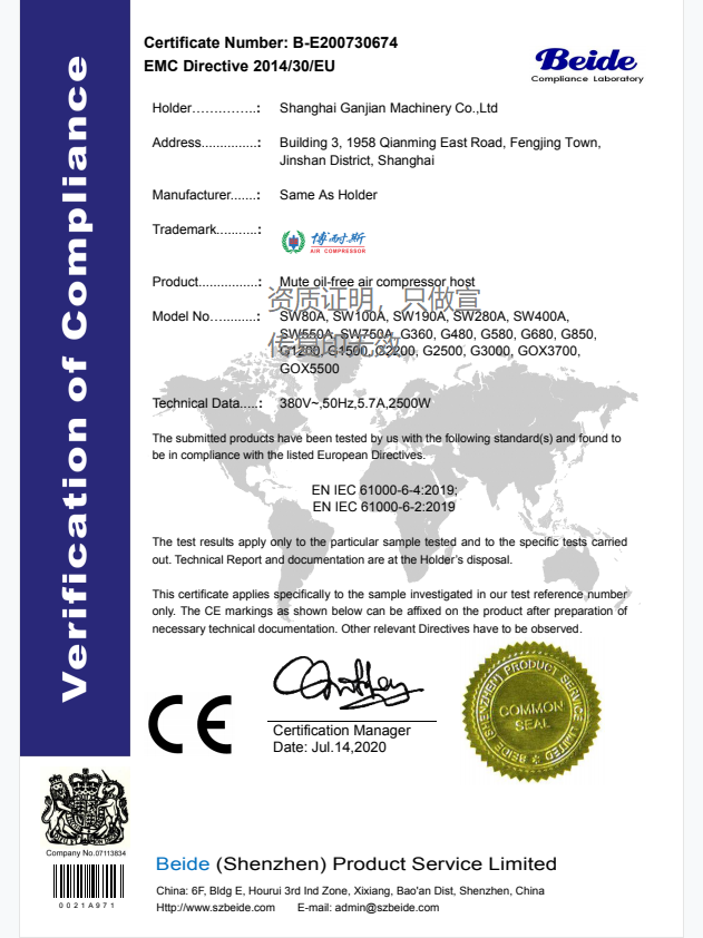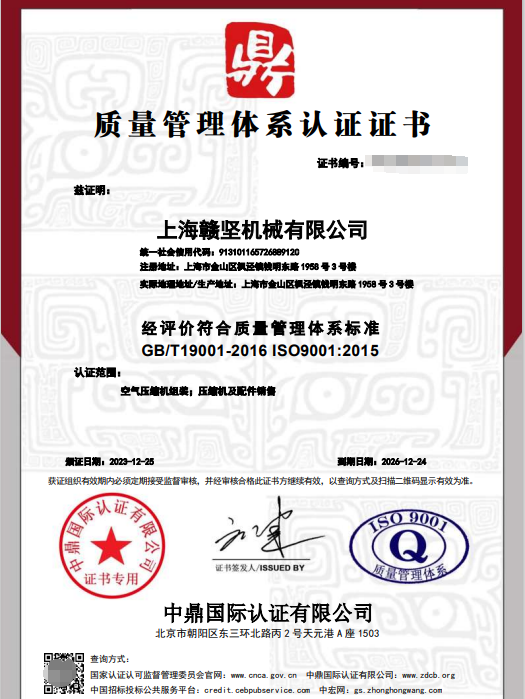 上海赣坚机械有限公司成立于2011年,工厂坐落于上海金山区枫泾工业园,是空气动力行业内具影响力的空气压缩机系统设备供应商之一。公司集研发、生产、制造、营销、服务为一体综合性高新企业,是专注于空压机的品牌制造商。公司通过不断研发、设计、创新和凭借过硬的空气动力学应用技术基础以及欧美地区空气技术的支持,全力打造高品质“博耐斯”品牌空气压缩机。公司将以保持在机械应用技术开发的前沿态度,雄厚的技术力量支持,国外先进的设备检测,严谨的科学管理,为博耐斯品牌赢得国内外客户的青睐做好坚实的保障。