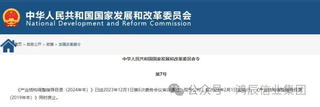 据国家发改委官网消息,《产业结构调整指导目录(2024年本)》已经2023年12月1日第6次委务会议审议通过,现予公布,自2024年2月1日起施行。