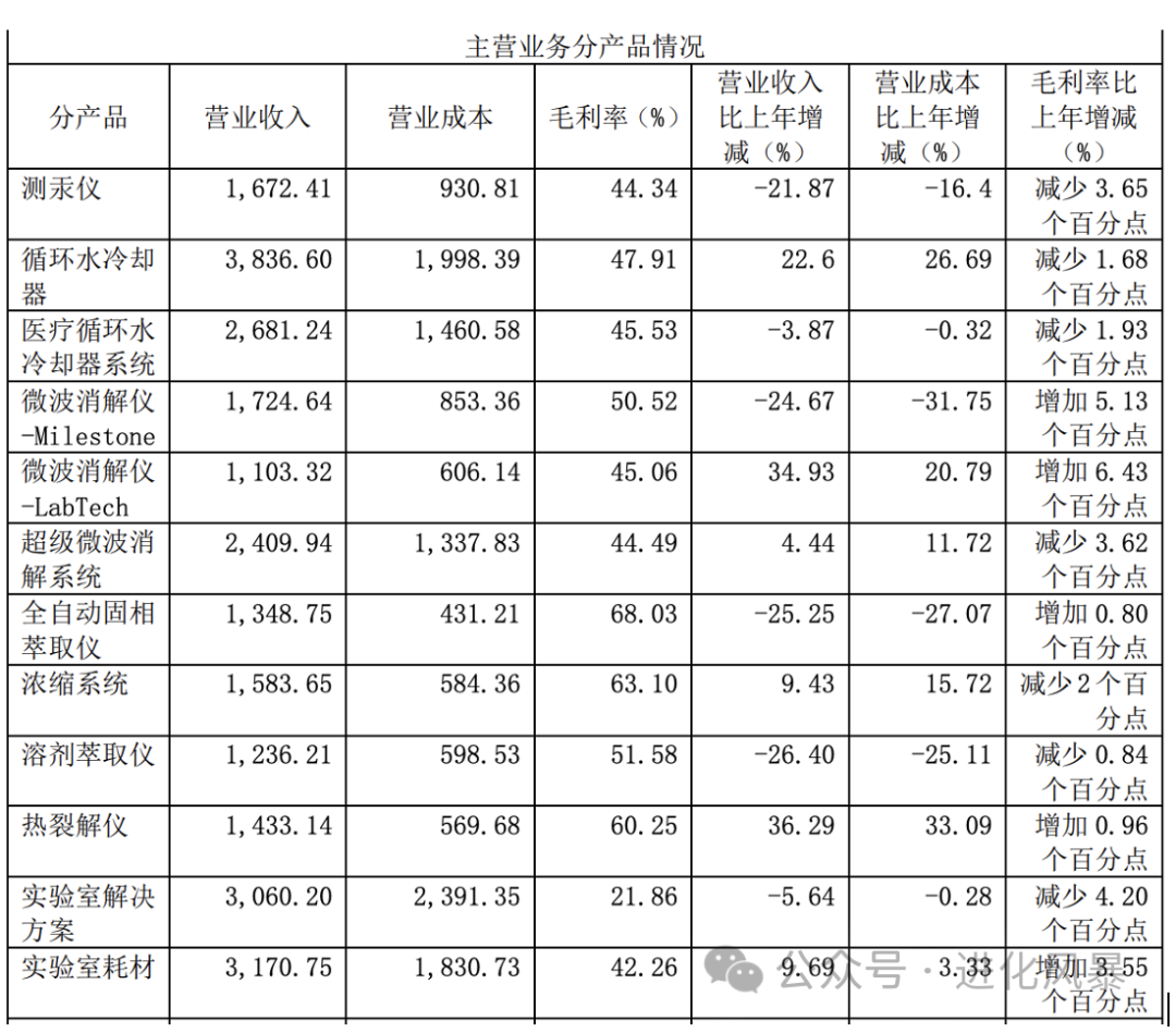 (3)分析仪器:主要服务于科研机构(包括生命科学行业用户)。仪器产品占比69%(42.09亿美元),主要包括色谱、质谱、光谱、自动化仪器、电镜等。