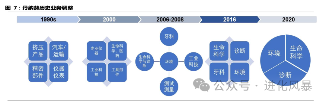 我们在前文《中国科学仪器壮大难——并购困局》中提到过丹纳赫在2016年对业务板块进行了调整,在2015年以148 亿美元收购PALL(分离纯化)以及2016年以40 亿美元收购分子诊断巨头Cepheid后,正式将生命科学业务与诊断业务分离。