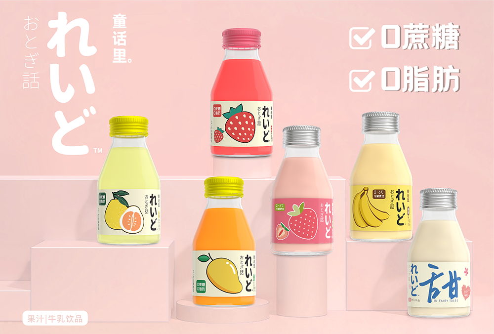 童话里、初饮系列饮品采用具有阻氧、避光、封闭性能强的玻璃瓶包装,韩语logo更有辨识度,为消费者打造出了全新视觉体验,小巧容量包装,方便携带,好喝实惠更好卖!