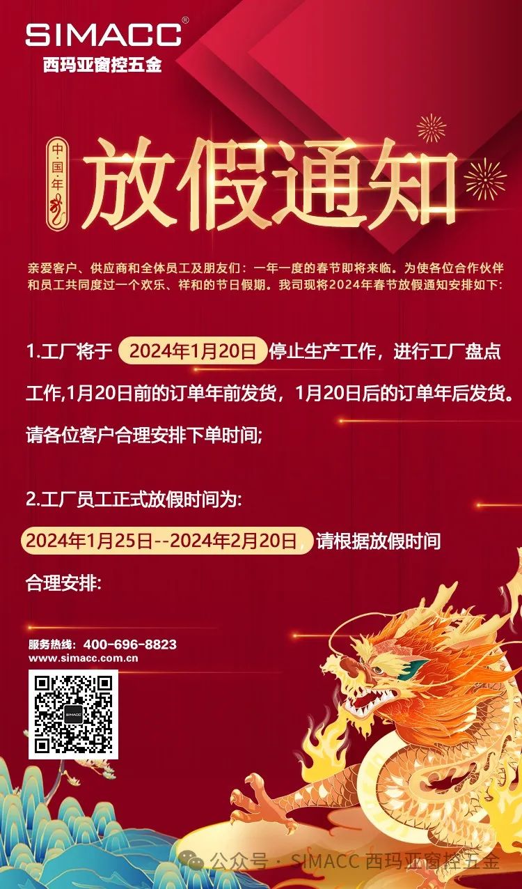 【西玛亚窗控五金】年前订货时间安排通知!~