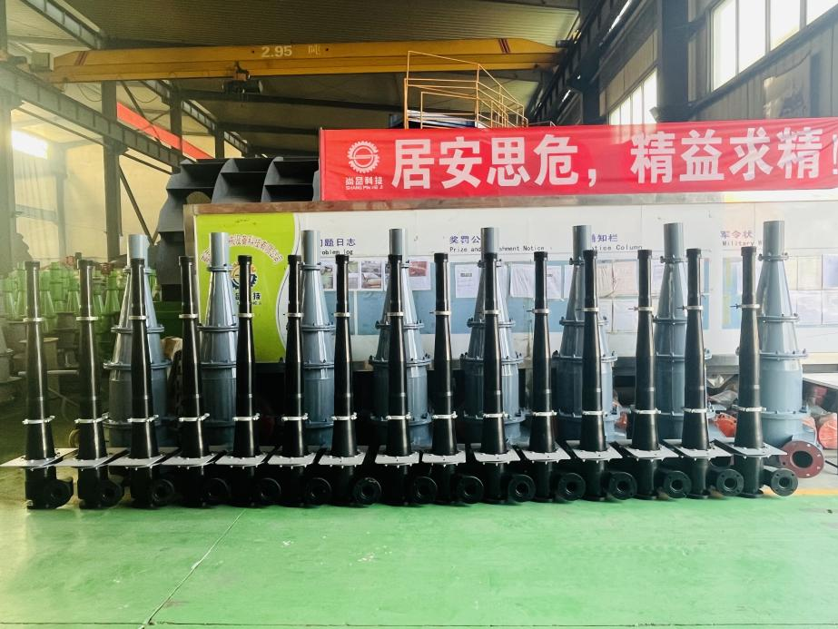 公司产品规格型号齐全,可生产旋流器最小规格为10mm,最大规格为Φ1500mm,单台处理能力可达700~800t/h。年可生产Ф10mm~Ф1500mm旋流器3000余台,机组200余套。年可生产高频脱水筛200台套,螺旋分选机100套。