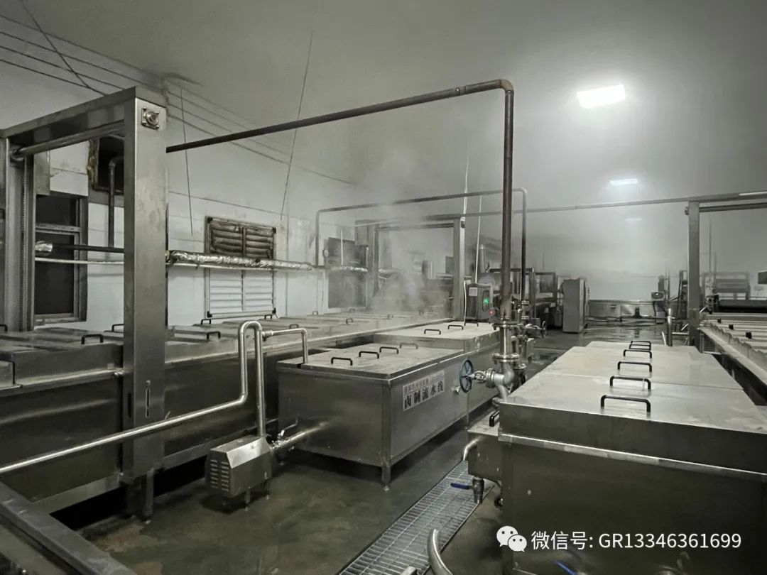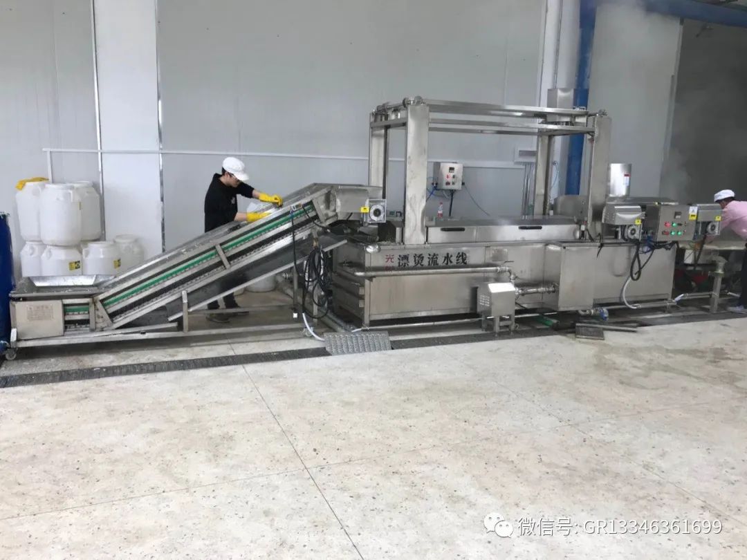 酸笋倒料、提升、漂烫、拌料一条线完成