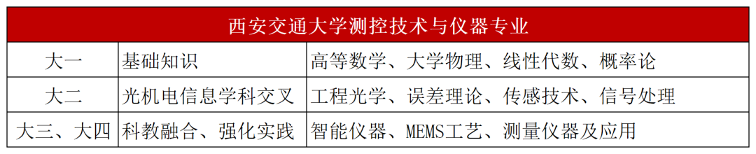 测控技术与仪器专业以仪器科学与技术学科为基础,研究物质世界中信息获取、处理、传输和利用的理论、方法和实现途径,运用物理、化学或生物学等方法,获取对象状态、属性及变化信息,并将其转换处理成易于表达和利用的形式,涉及计量学、物理学、化学、生物学、材料学、机械学、电学、光学、计算机、自动控制、通信等多学科知识,多学科交叉和技术集成特点明显。专业知识领域主要包括传感器及检测技术基础、测量理论与控制技术基础、信号分析与数据处理技术基础、测控总线与数据交互技术基础、系统设计与仪器实现技术基础。西安交通大学测控技术与仪器专业的主要知识体系如下,大家可以参考?