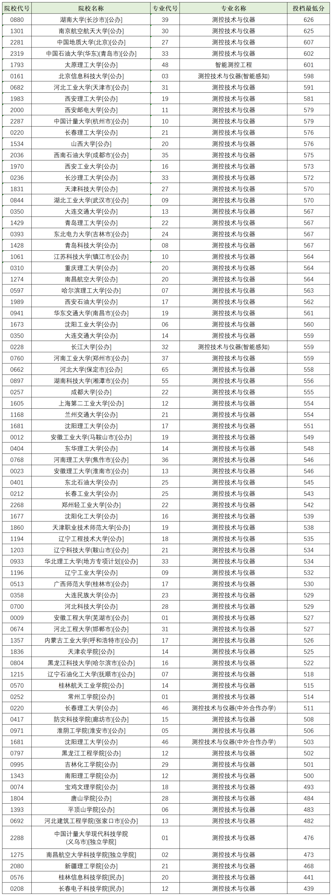 以河北省物理组为例,2023年部分院校的测控技术与仪器专业录取分数线如下