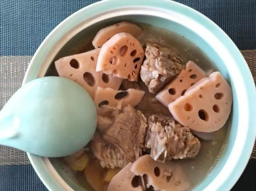 米饭、萝卜炖牛腩、炫彩包心菜、排骨莲藕汤